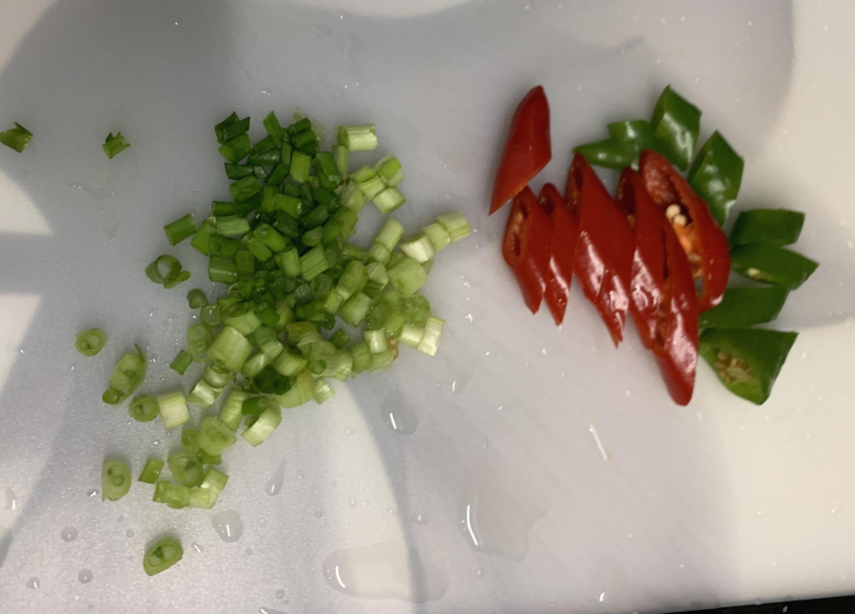 마지막으로 요리 장식을 해 줄 고추와 쪽파를 준비해줍니다.