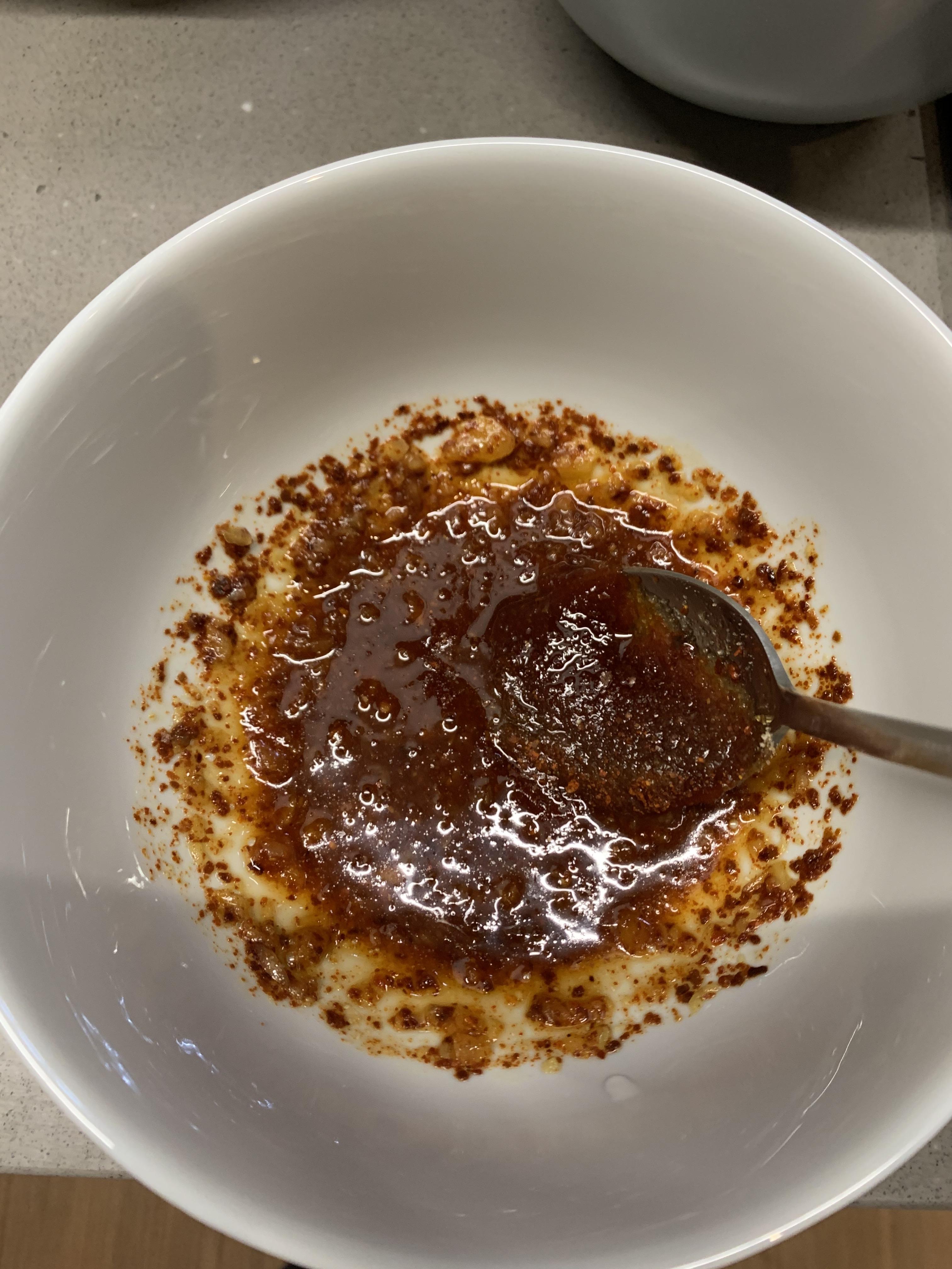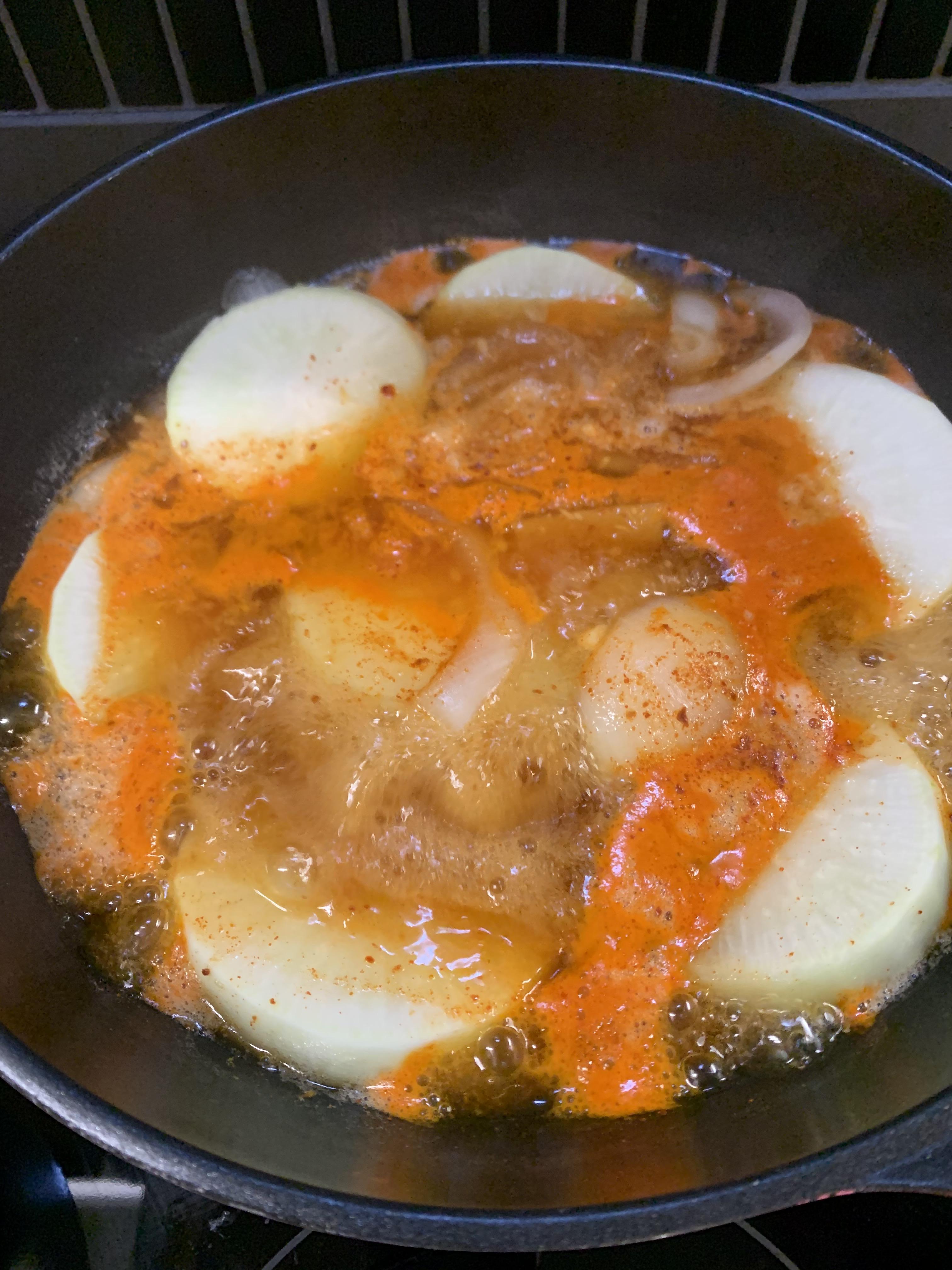 5. 무를 익히는 동안 양념장을 만들어줍니다.
