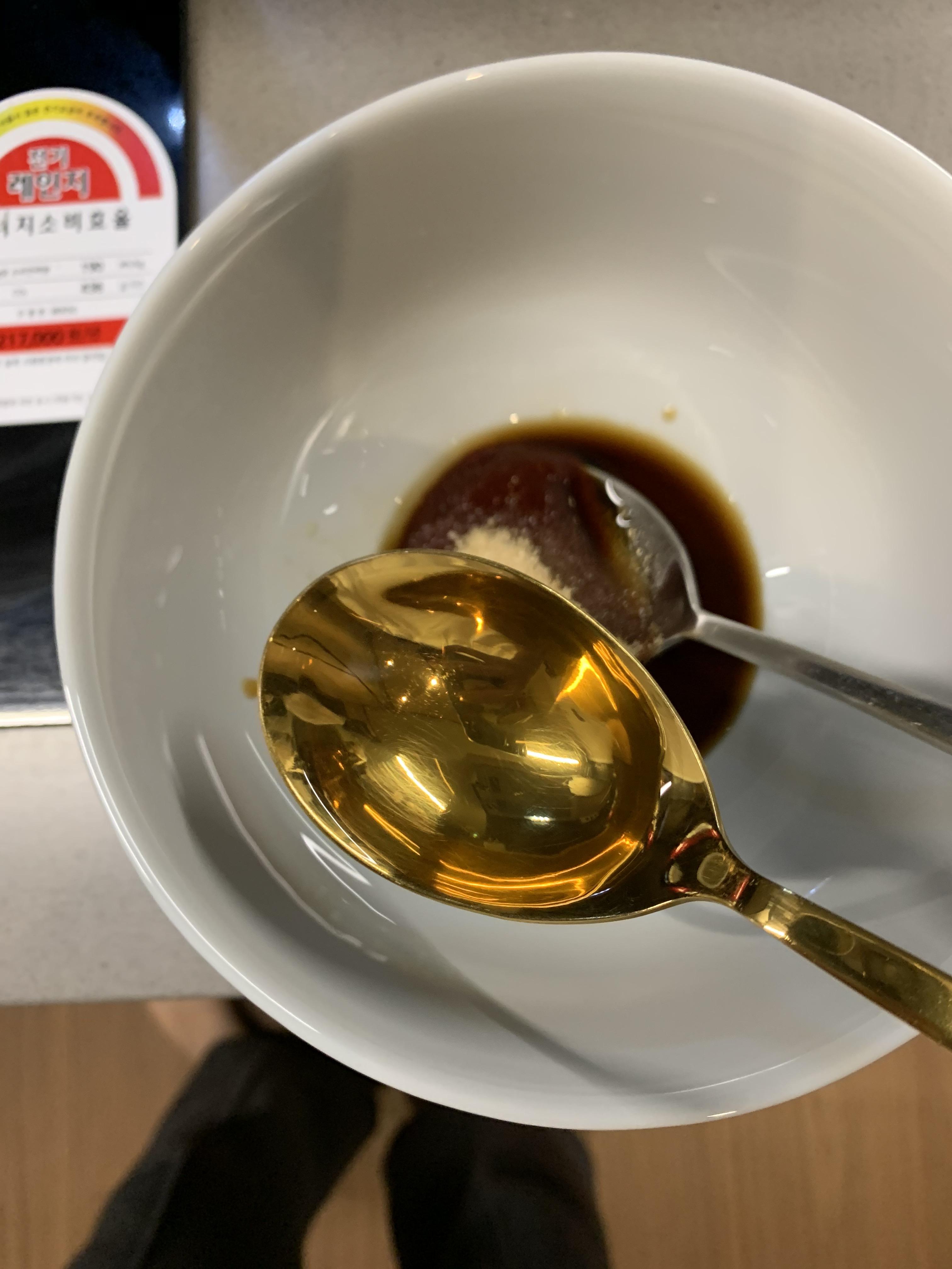 맛술 2큰술 (숟가락에 모습이 비쳐서 살짝 부끄럽네요...ㅎ)