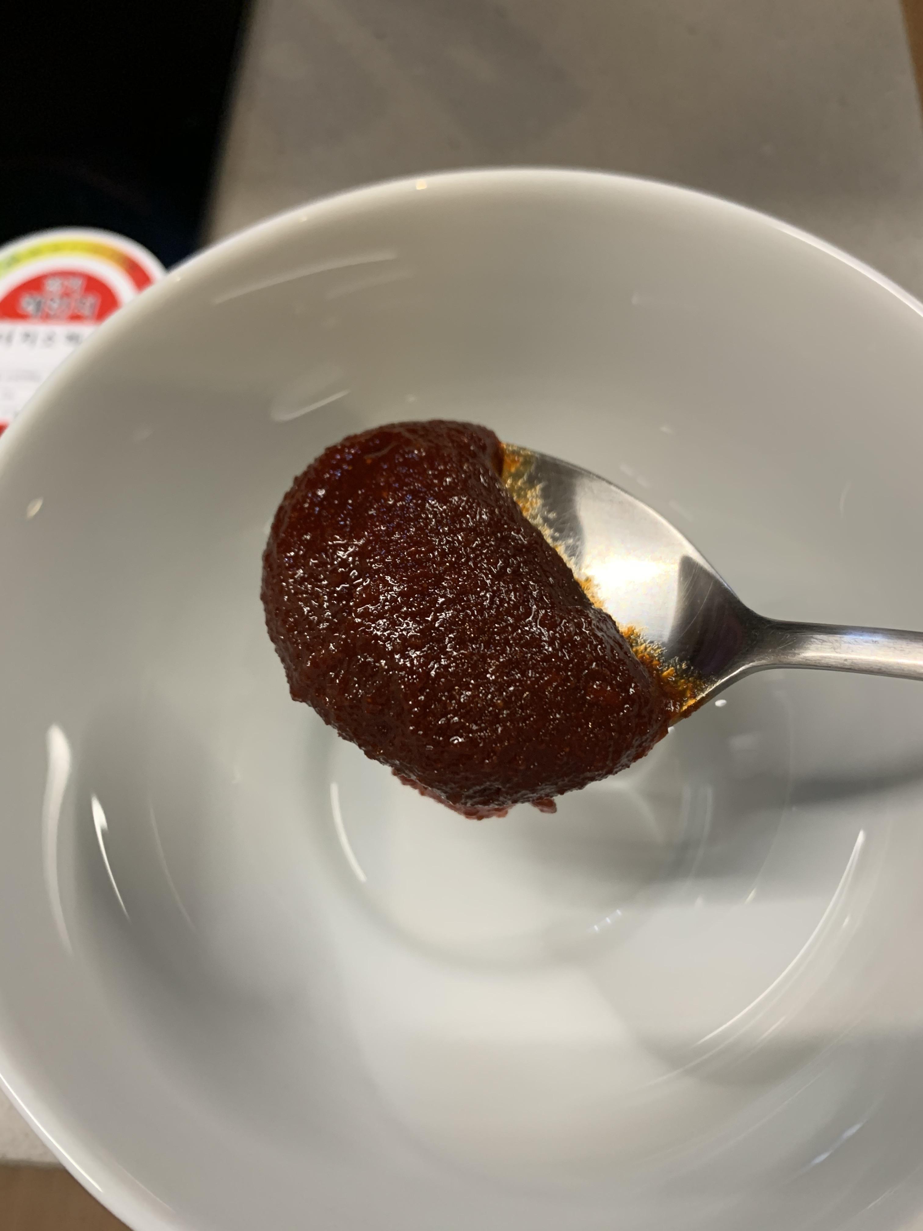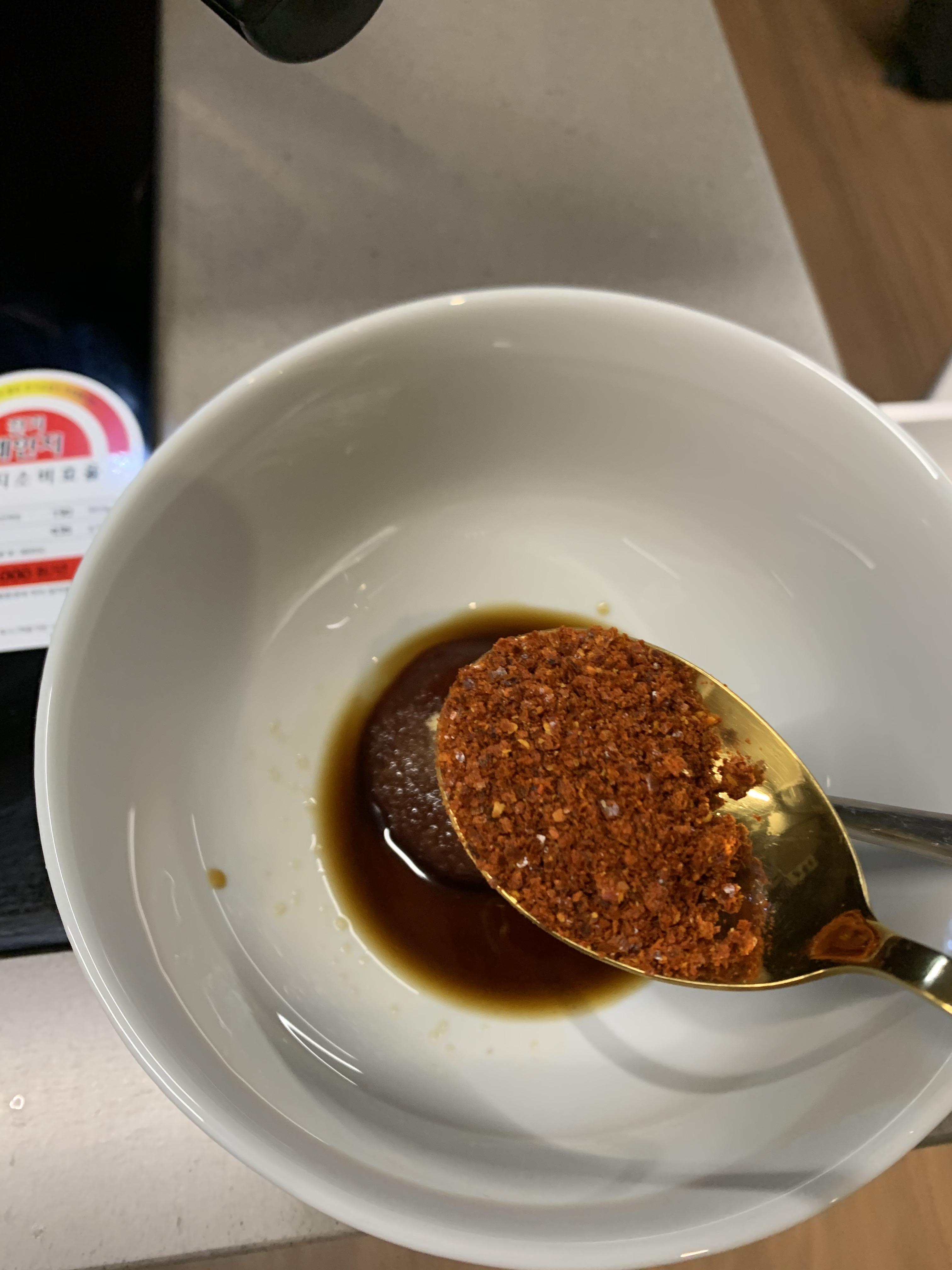 (처음에 2/3 양만큼만 넣어줬다가 색도 안 예쁘고 칼칼한 맛을 더 내고 싶어서 1큰술 마지막에 뿌려줬어요! 아래쪽 사진 있음)