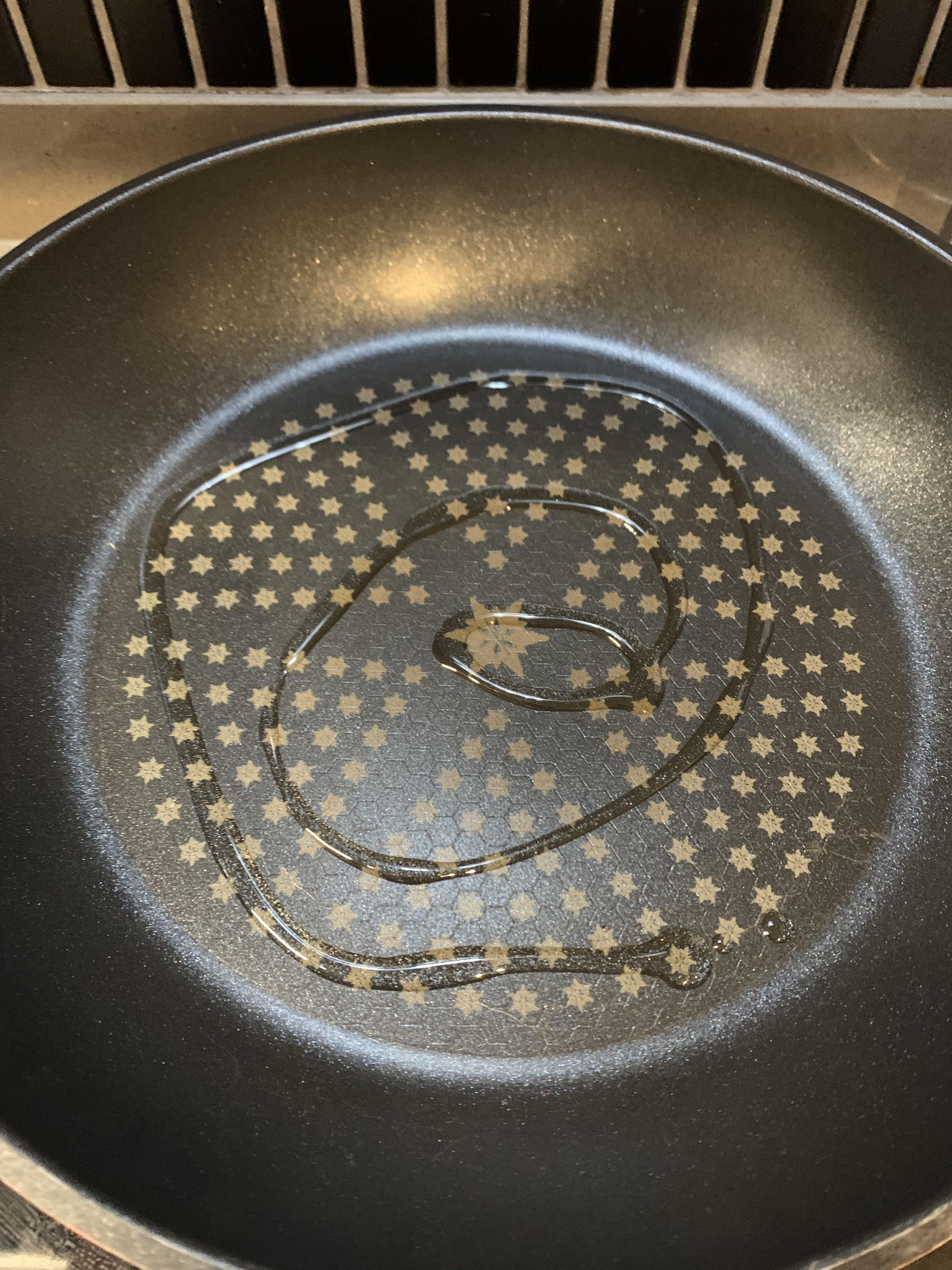 2. 달궈진 프라이팬에 식용유를 둘러줍니다.