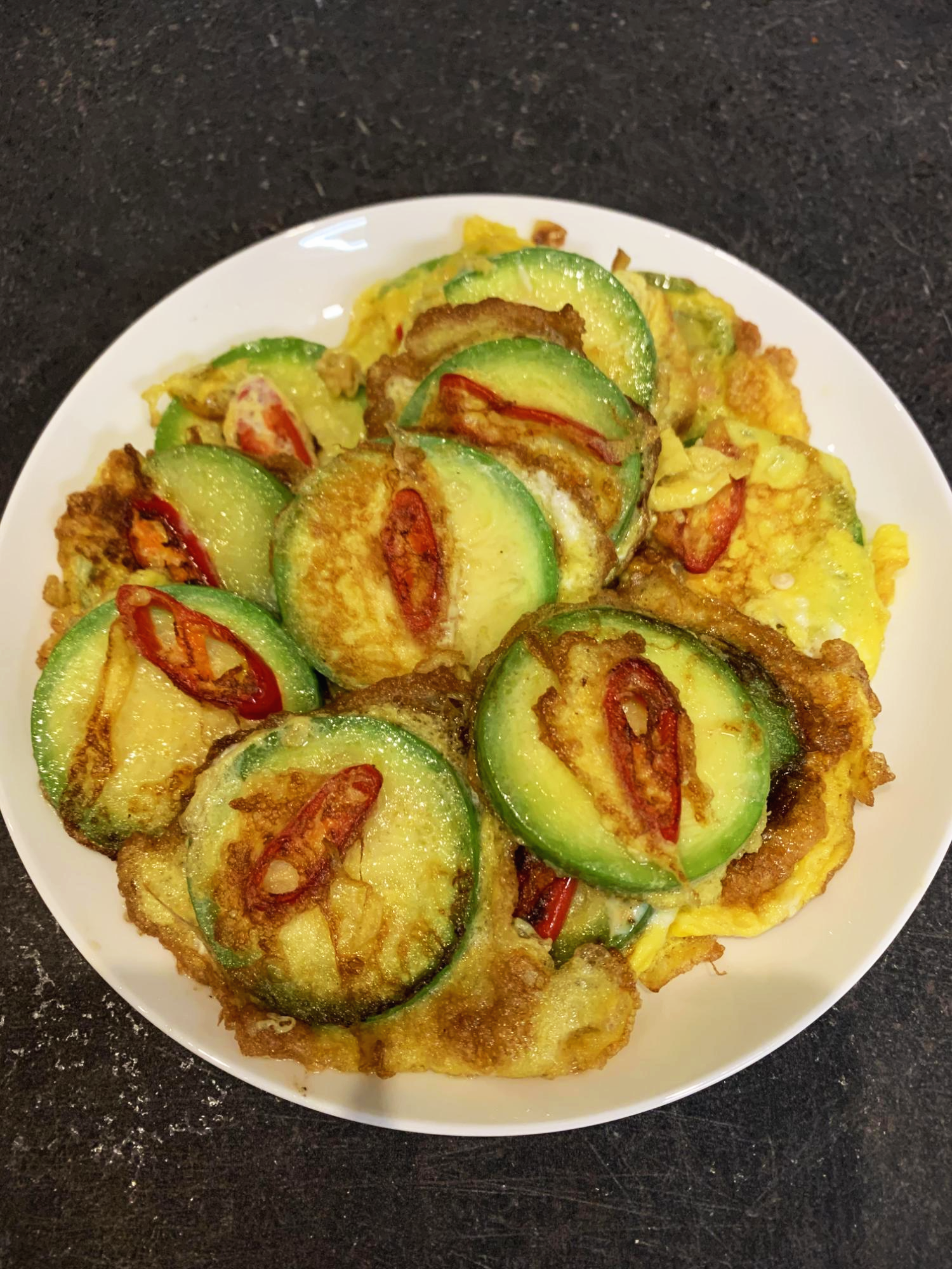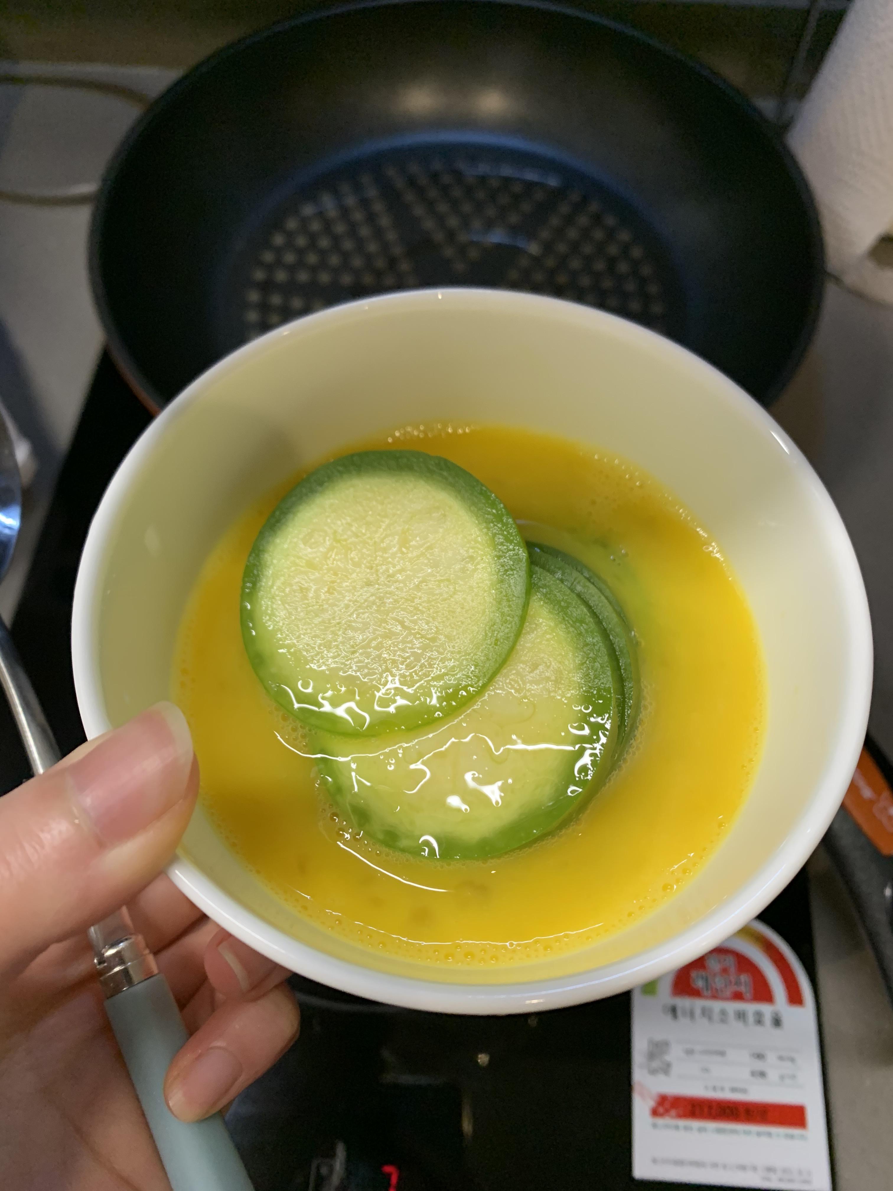 애호박 저 정도 사이즈에는 계란 1알만으로도 충분합니다 :)