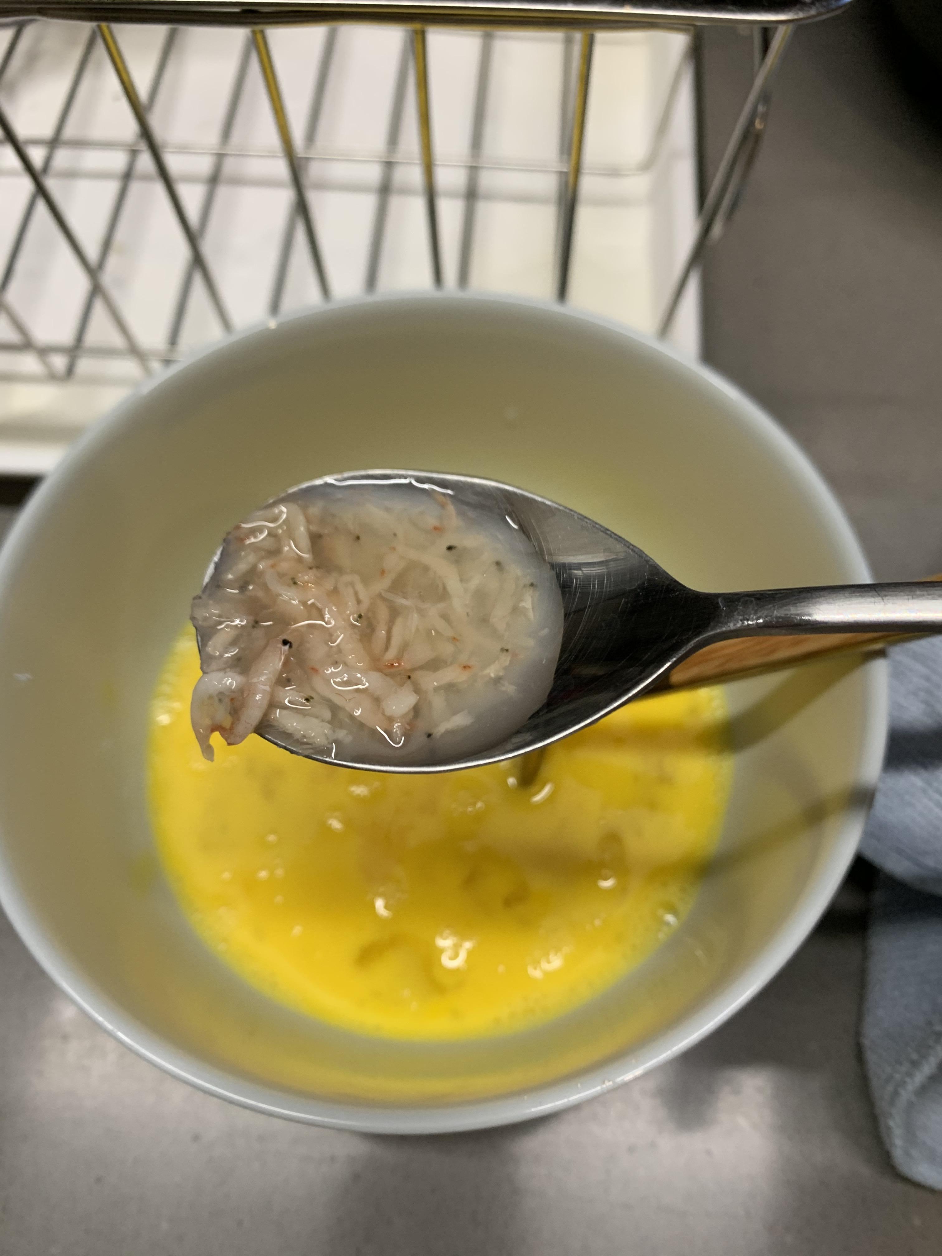 2. 새우젓 약간, 후추 약간, 소금 2꼬집을 넣어줍니다.